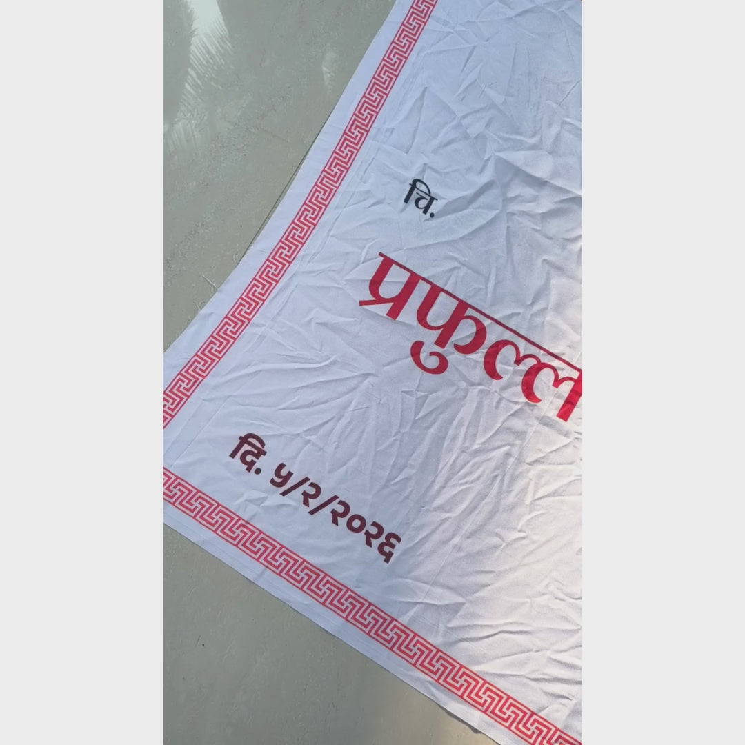 "आम्हाला वैयक्तिक टच असलेला अंतरपाट हवा होता, आणि हा खरंच तसाच निघाला! उत्कृष्ट प्रिंटिंग, भरजरी फिनिश आणि दर्जेदार फॅब्रिक यामुळे आमच्या लग्नाच्या विधींमध्ये तो सहज उठून दिसत होता. खूप आनंद झाला!" -
